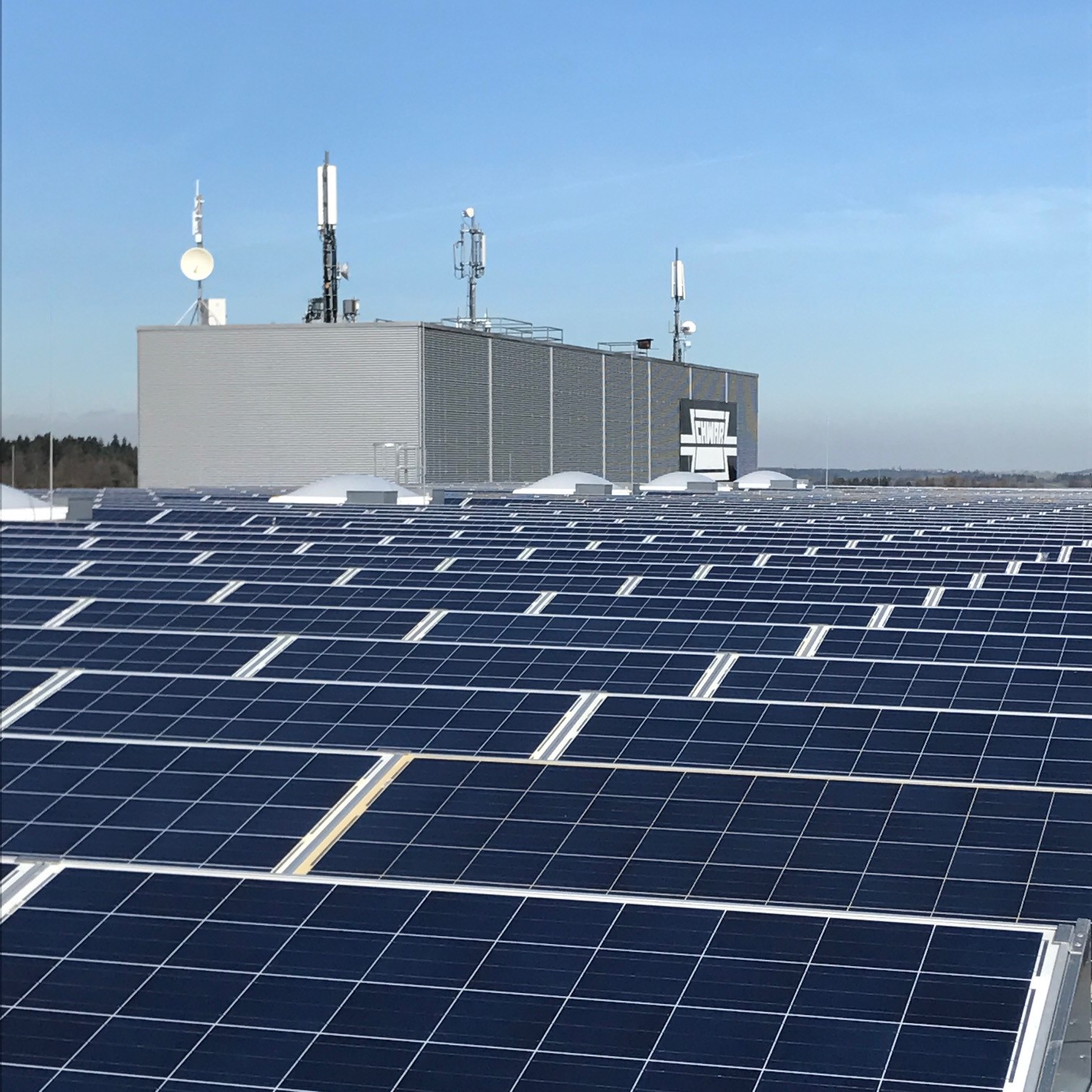 „Schon bei der Planung der Gebäudestatik war uns klar, dass wir eine Photovoltaikanlage investieren möchten“, äußert sich Geschäftsführer Uwe Schwarz voller Überzeugung. Seit 2014 besitzt die Firma Gebr. Schwarz eine 194,75kWp-Photovoltaikanlage mit einer installierten Modulfläche von 1280m² und 779 Solarmodulen. Diese installierte Leistung erwirtschaftet überproportional hohe Energieerträge, und dies über einen langfristigen Nutzungszeitraum. Im Jahr 2016 konnte eine Leistung von 13,7% über dem für die Region definierten Erntefaktor erwirtschaften. Durch Eigennutzung der Sonnenenergie können in den nächsten Jahren sukzessive Einsparpotentiale erarbeitet und umgesetzt werden. Ziel der Photovoltaikanlage ist, in den nächsten Jahren so viel Sonnenenergie zu ernten, dass dadurch jährlich bis zu 15% des Gesamtverbrauchs erwirtschaftet werden kann. Langfristige Erweiterungsplanungen führen in Zukunft zu einer weiteren Autarkie vom Stromnetz.