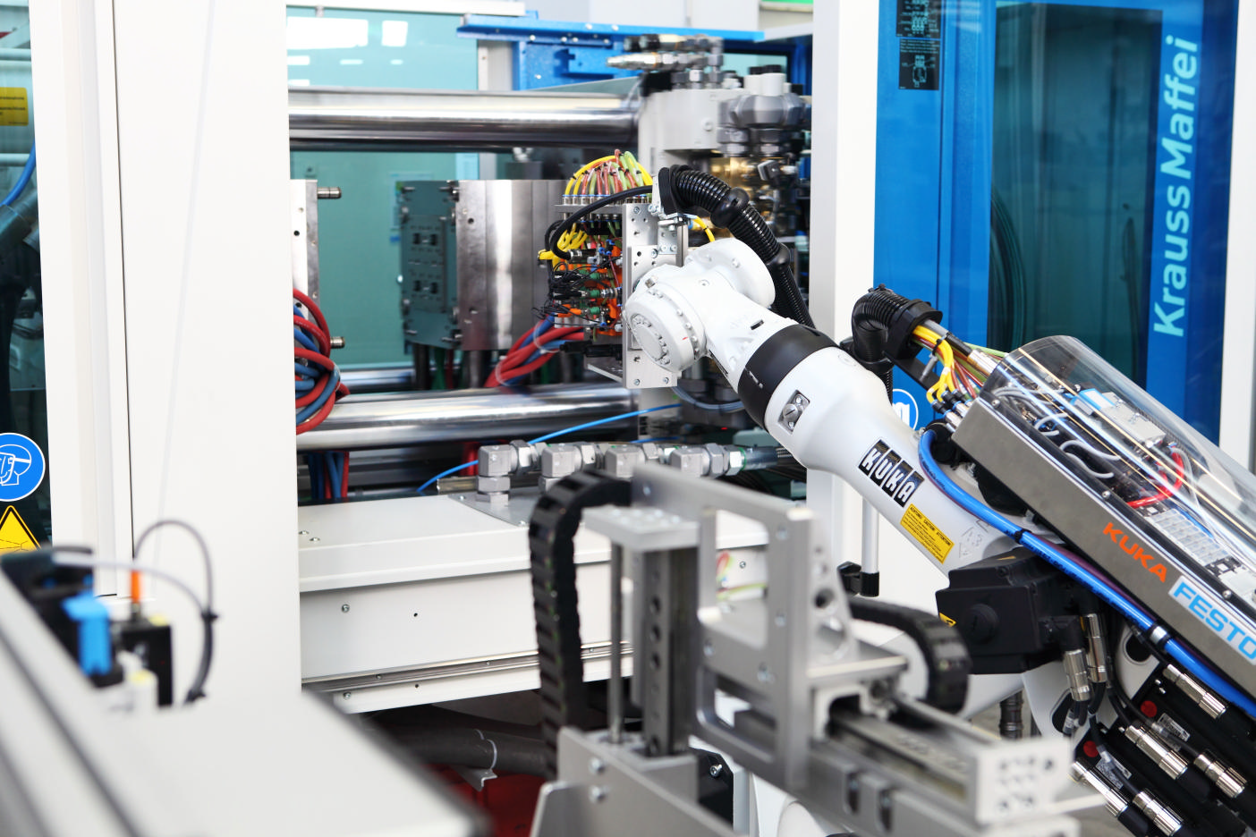 The production of complex injection molding parts requires a high degree of precision and repeatability. In addition, only a robot is capable to guarantee the predetermined cycle time and process safety.