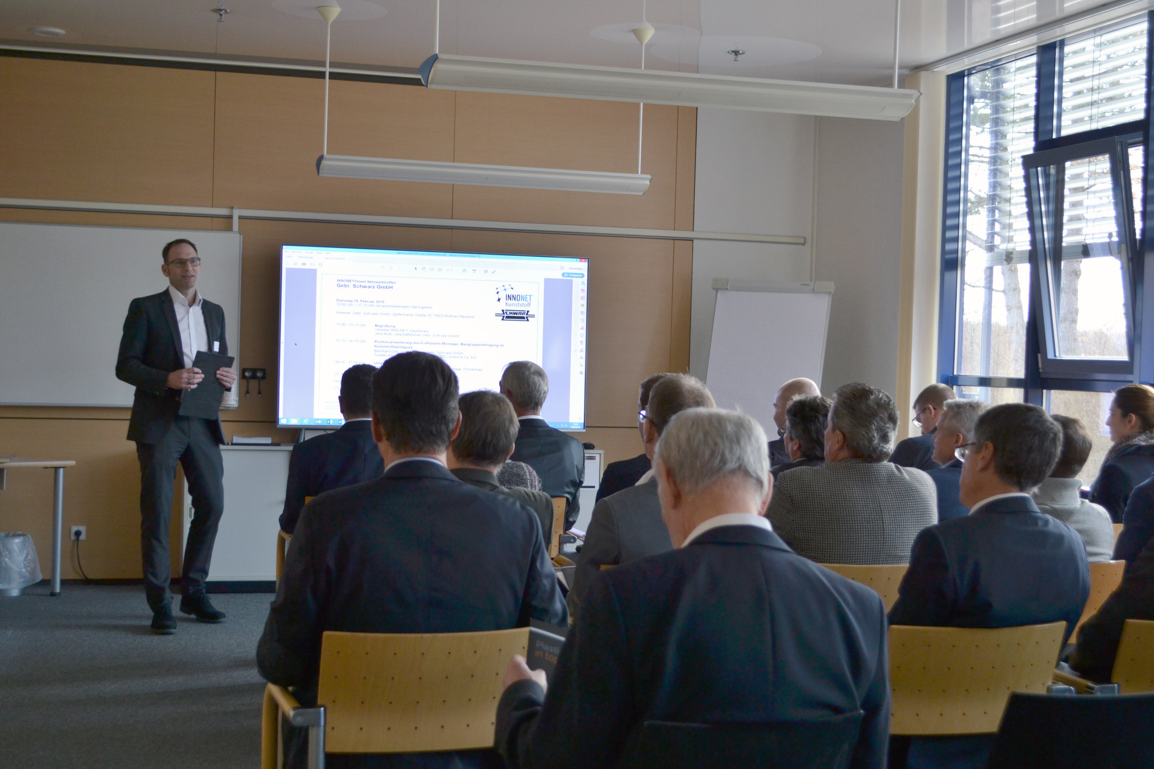 Schwarz GmbH in Rottweil-Neukirch invited forty INNONET partners to take a look behind the scenes on 19 February 2019. “Gebr. Schwarz stands for the idea of a functional high-tech network for plastic solutions", Managing Director Jens Roth described the company's competence. "This enables us to meet the high demands of our customers, to guarantee excellent quality in the manufacturing of injections molding products and assemblies".
